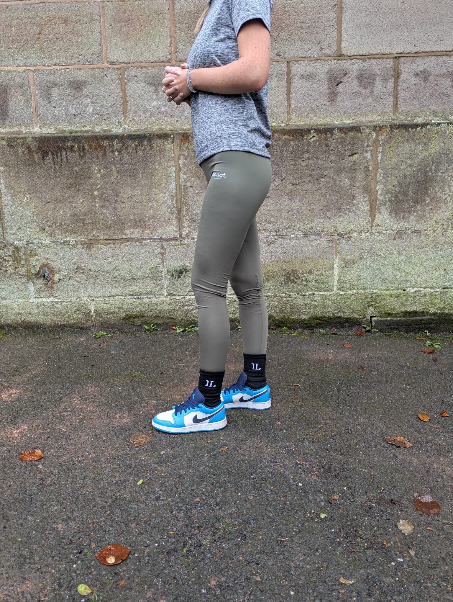 Made from high-quality acrylic material, these unisex crew length socks feature a black IL logo embroidered on white fabric.