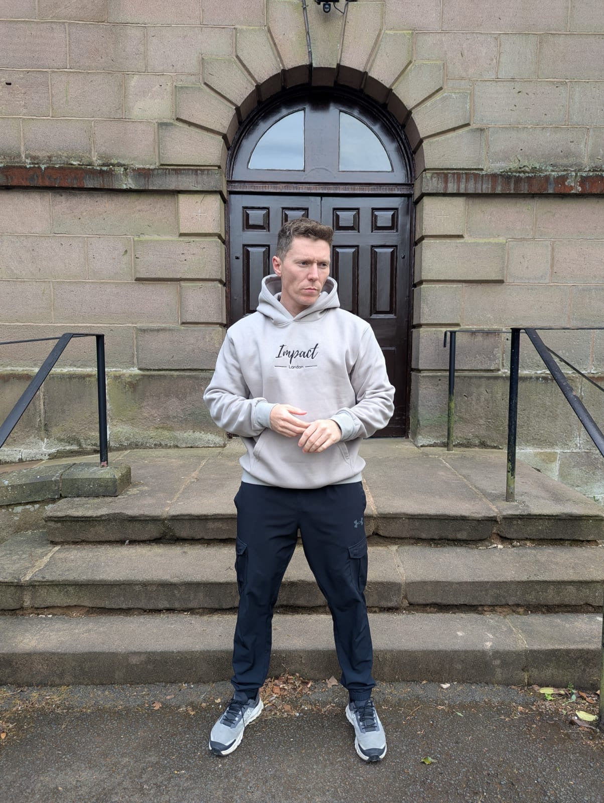 Oversized Grey Hoodie with Black Embroided Logo