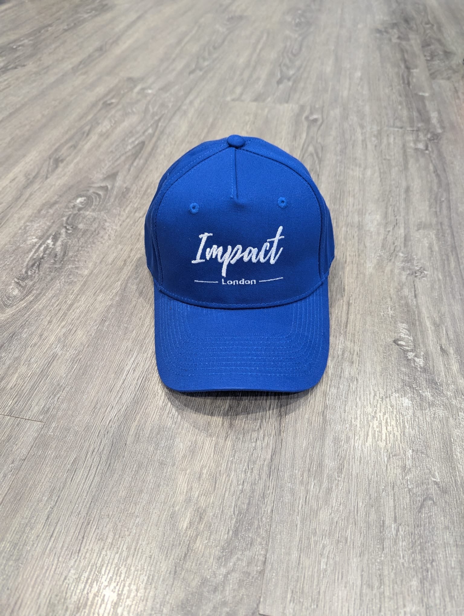 Bold Royal Blue Design with contrast white 3D embroidered Impact London logo
