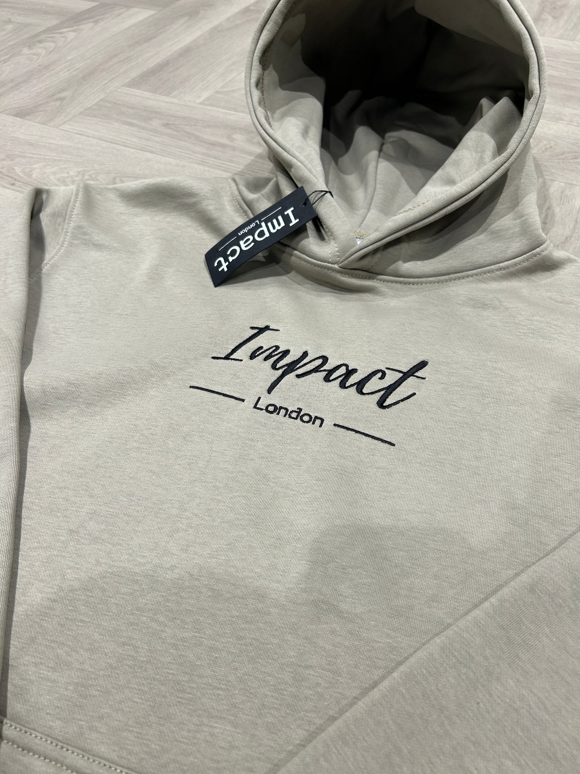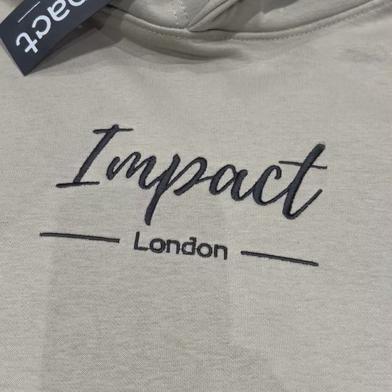 Experience ultimate comfort and style with the adult's premium quality sand beige Hoodie featuring a beautifully stitched white logo in the center and a spacious front pocket.