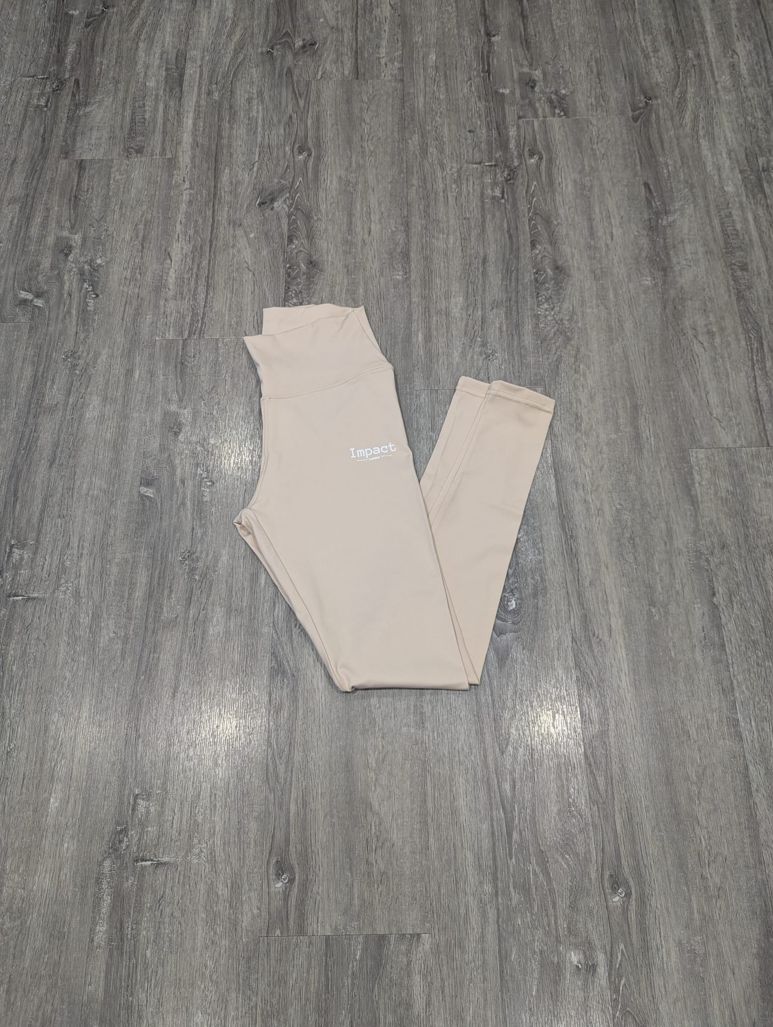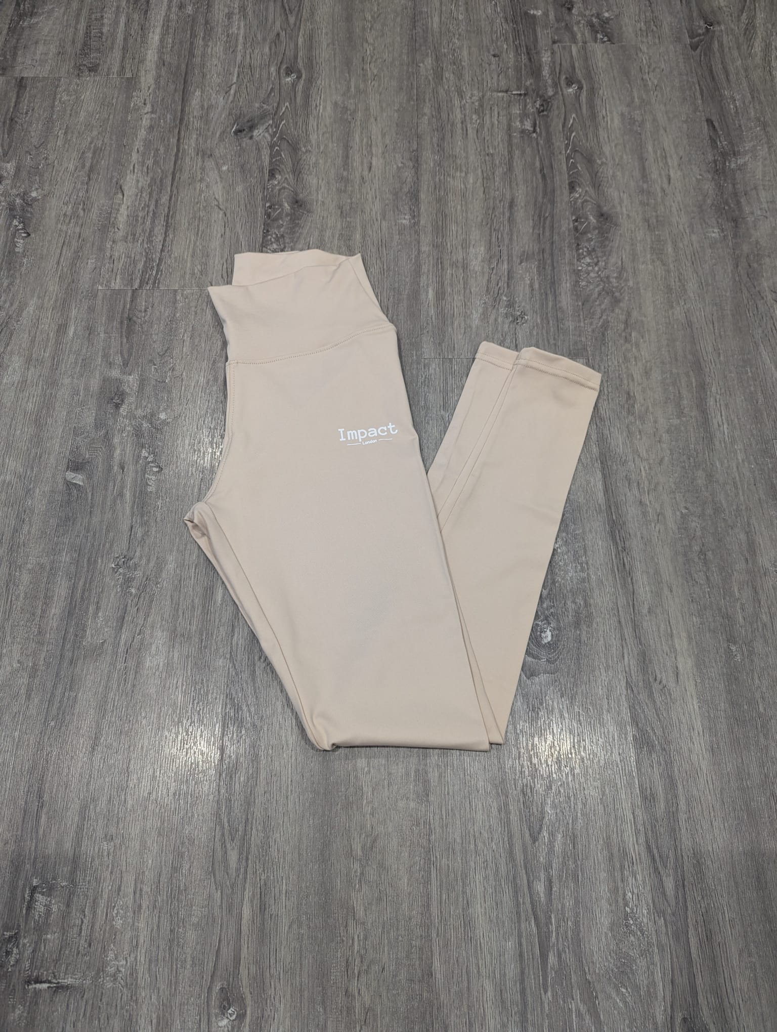 The perfect casual item of clothing that you can wear all year round are our classic high waisted stone leggings with white printed logo for women.