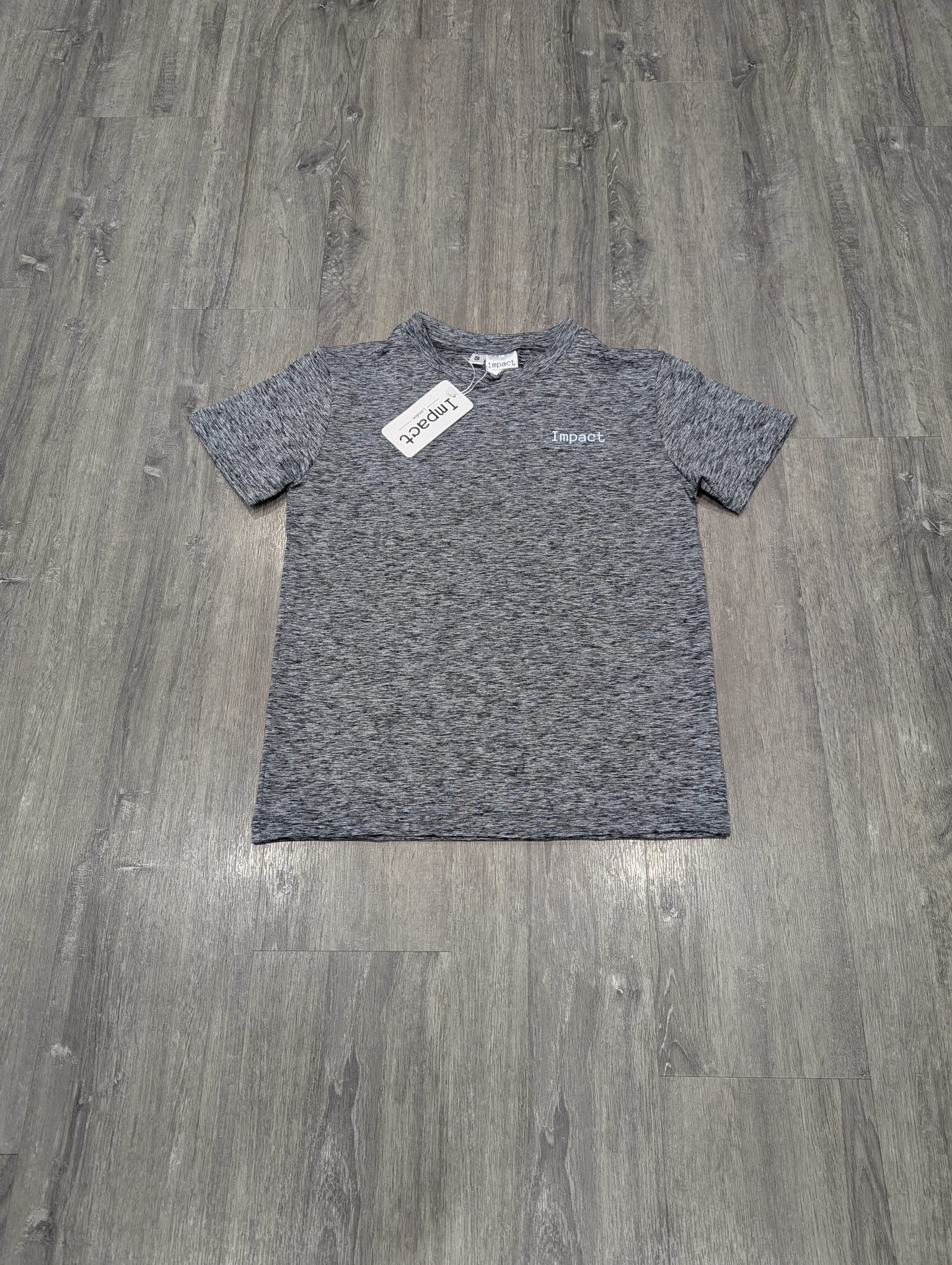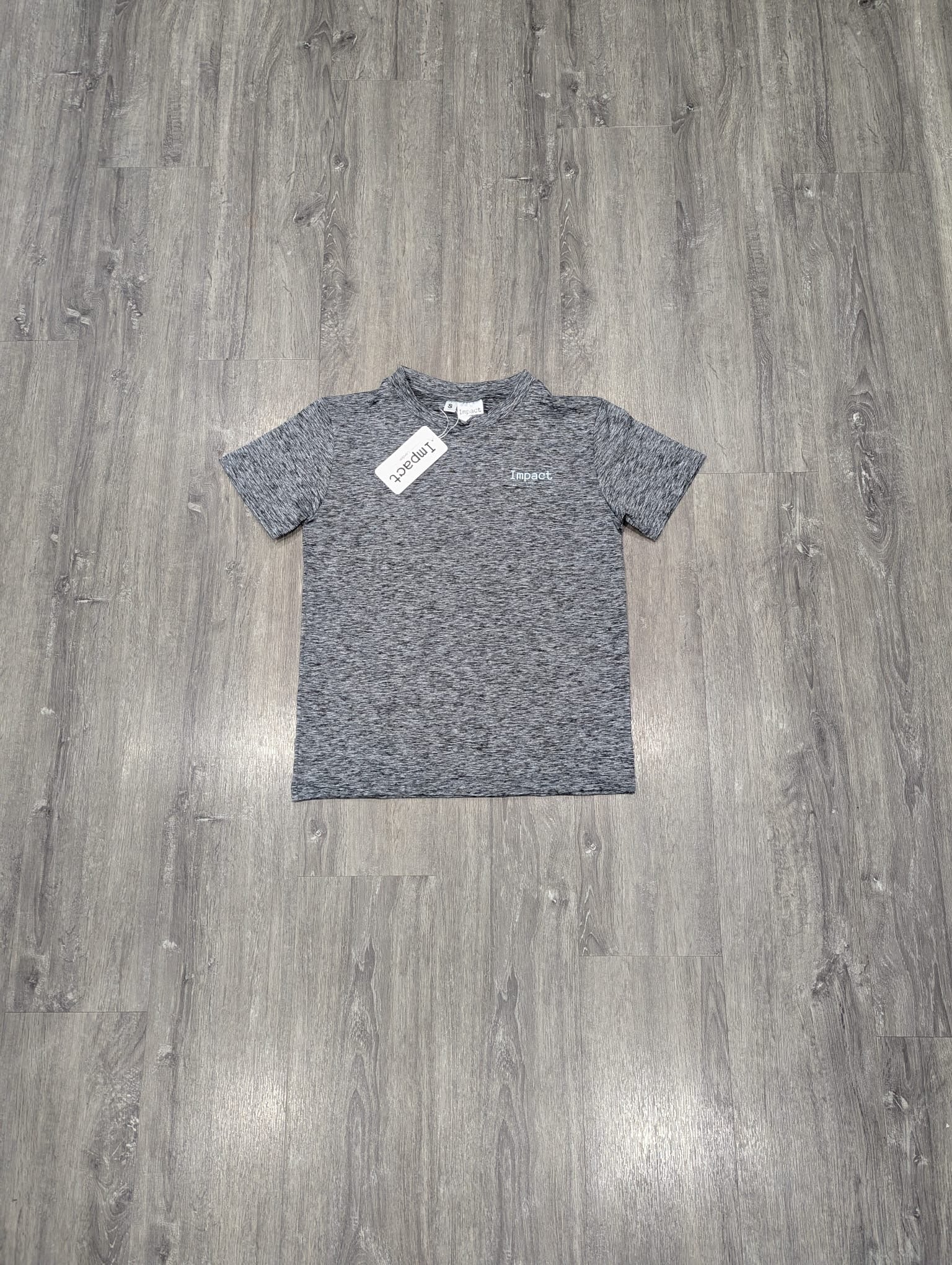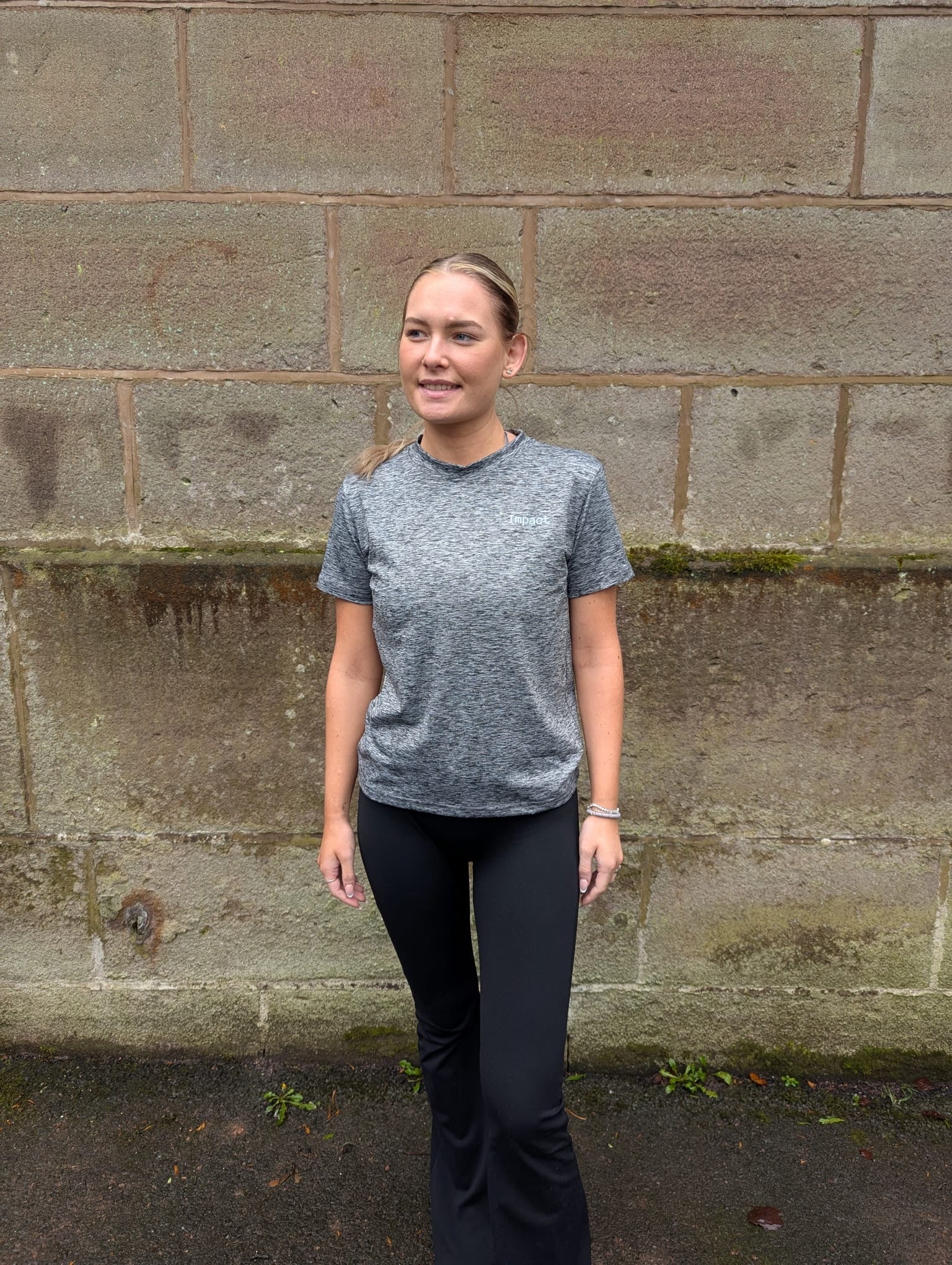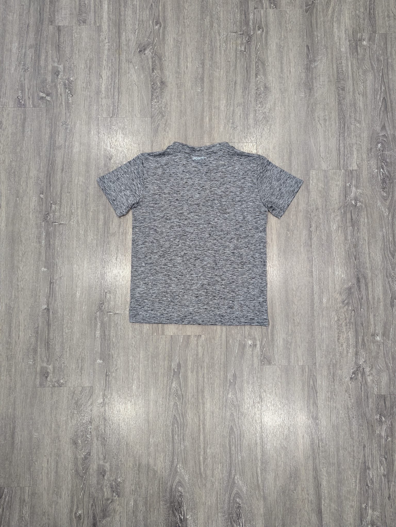 Premium quality textured grey dry fit t-shirt with a white printed logo. The tee is made from a dry fit material perfect for absorbing sweat during a workout making it the perfect go to item for a workout or daily use.